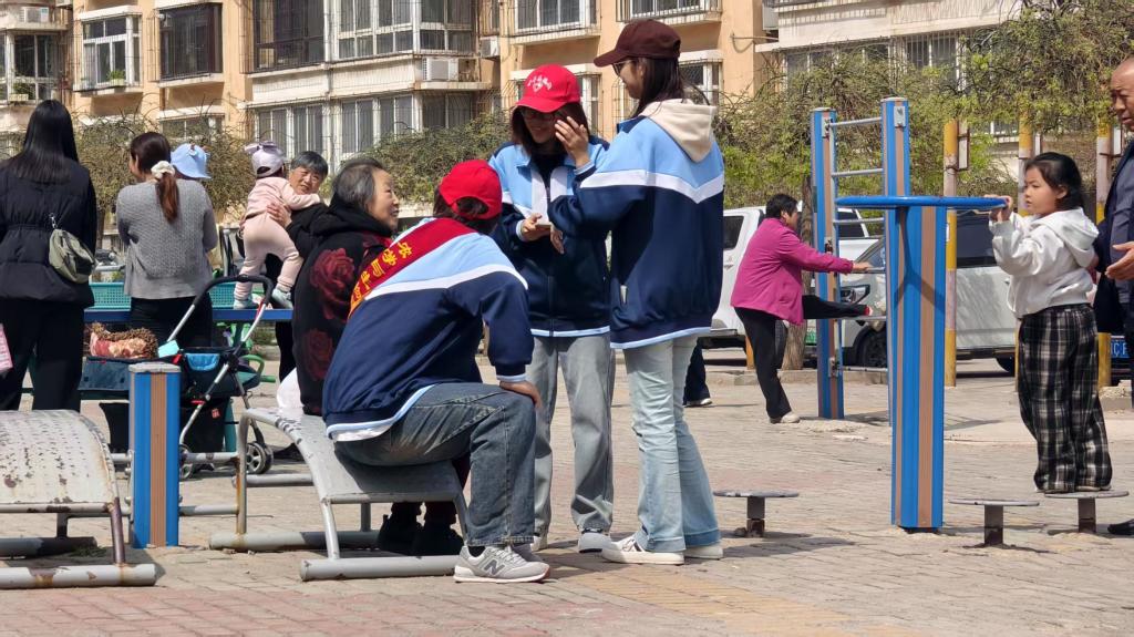 活动中,同学们与老人们亲切交谈,倾听他们的生活故事,清扫院落、擦拭公共设施、进行垃圾分类处理。通过活动,为社区居民营造了干净舒适的生活环境,为社区老人送去了关怀与温暖,从老年人人生经验中汲取智慧。
