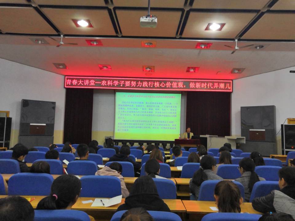 2018年10月22日晚,beat365唯一官网入口举办了《农科学子要努力践行核心价值观,做新时代弄潮儿》的青春大讲堂专题讲座,学院党委负责人作了专题报告。 150名青年学生参加了活动。