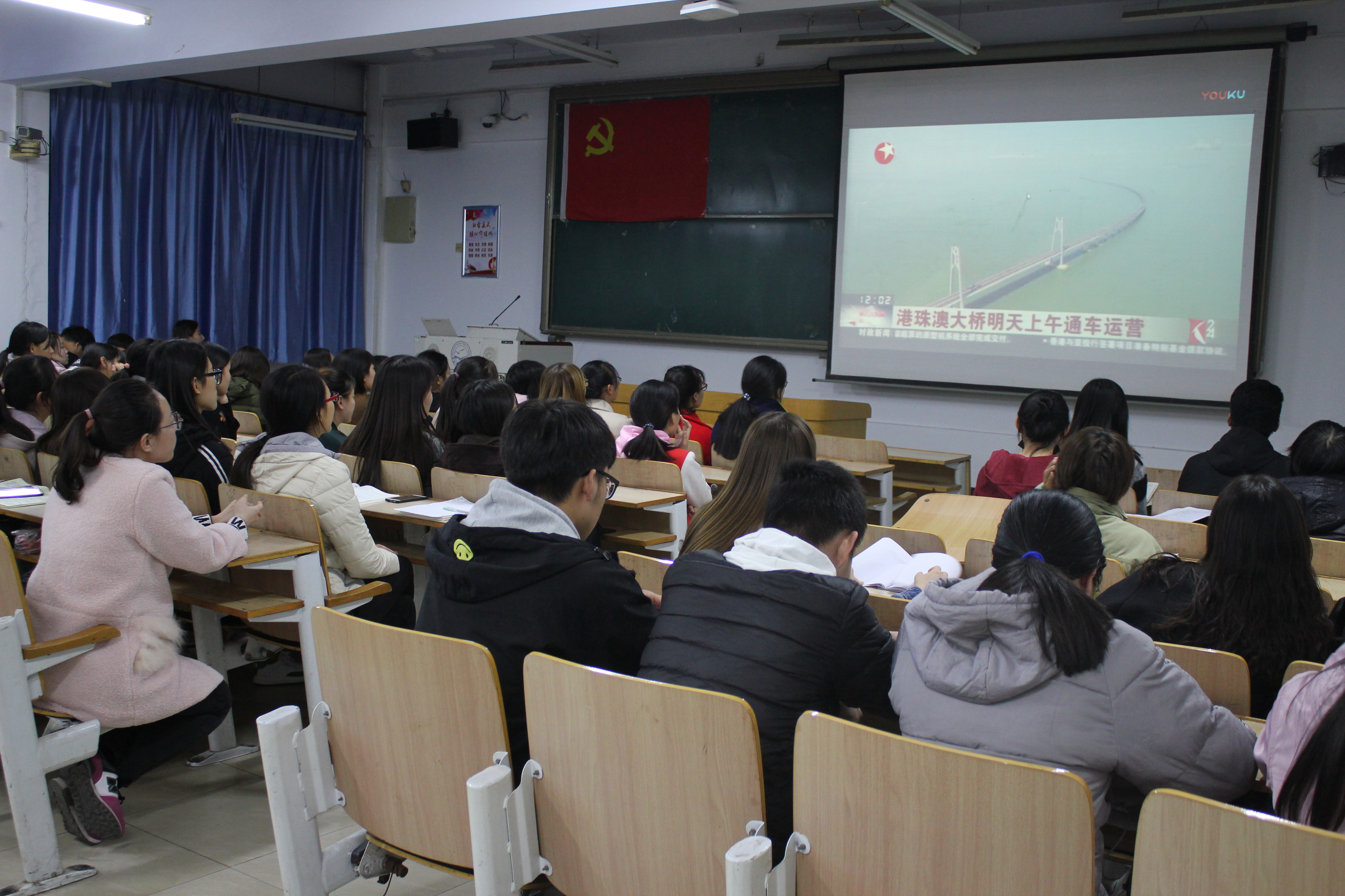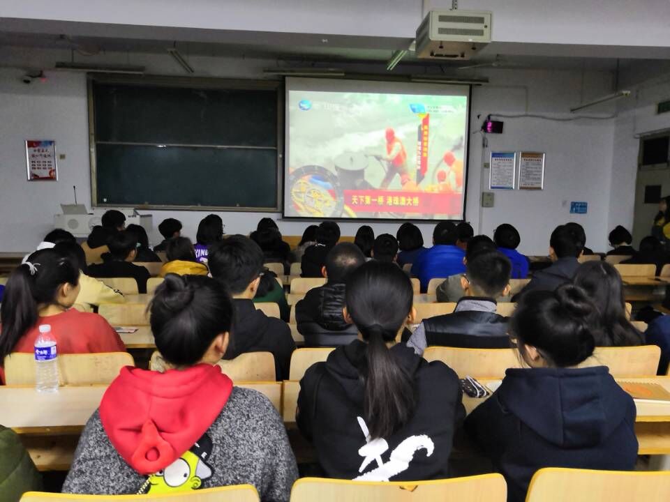 2018年10月23日上午,港珠澳大桥开通仪式在珠海公路口岸举行。世界上第一跨海大桥——“港珠澳大桥”正式建成通车,为全世界瞩目。为庆祝我国桥梁建设事业这一伟大壮举,弘扬中华民族艰苦奋斗、自力更生的崇高精神,感怀改革开放的历史性成就,增强民族自豪感。10月28日晚,beat365唯一官网入口党委分两场组织青年学生党员、入党积极分子和共青团员观看了大型纪录片《港珠澳大桥开通仪式》和《港珠澳大桥》等视频资料,300名学生参加了活动。