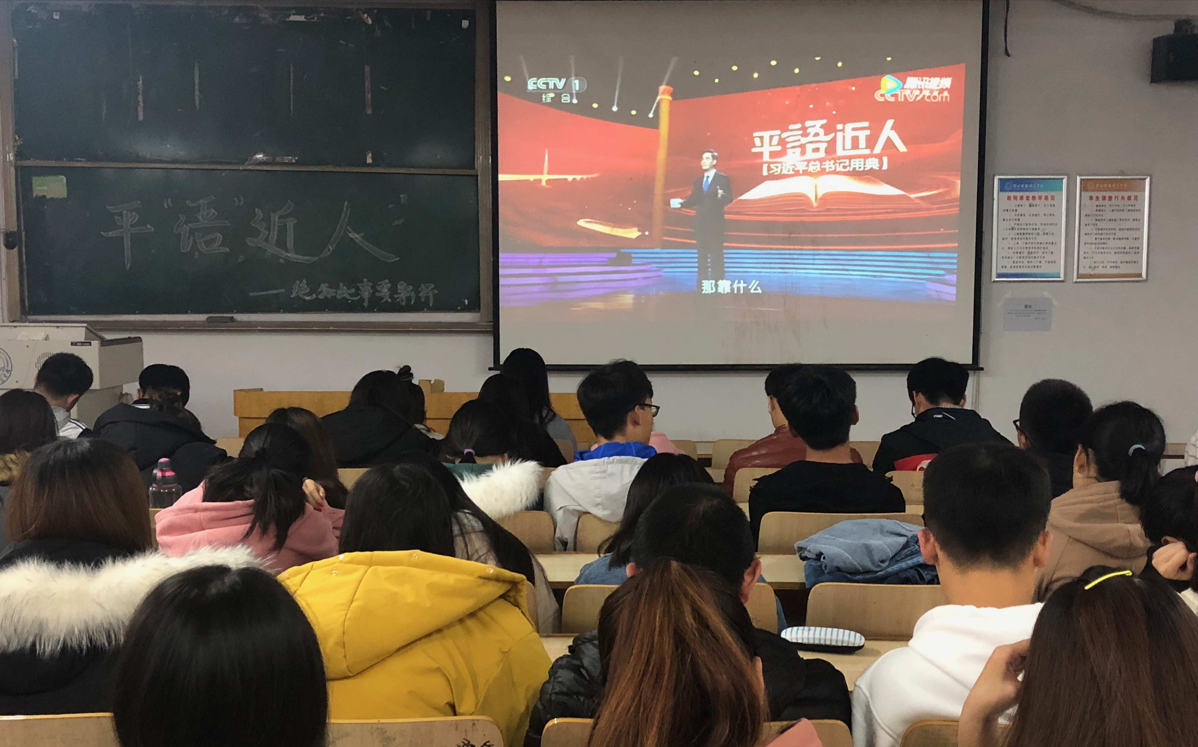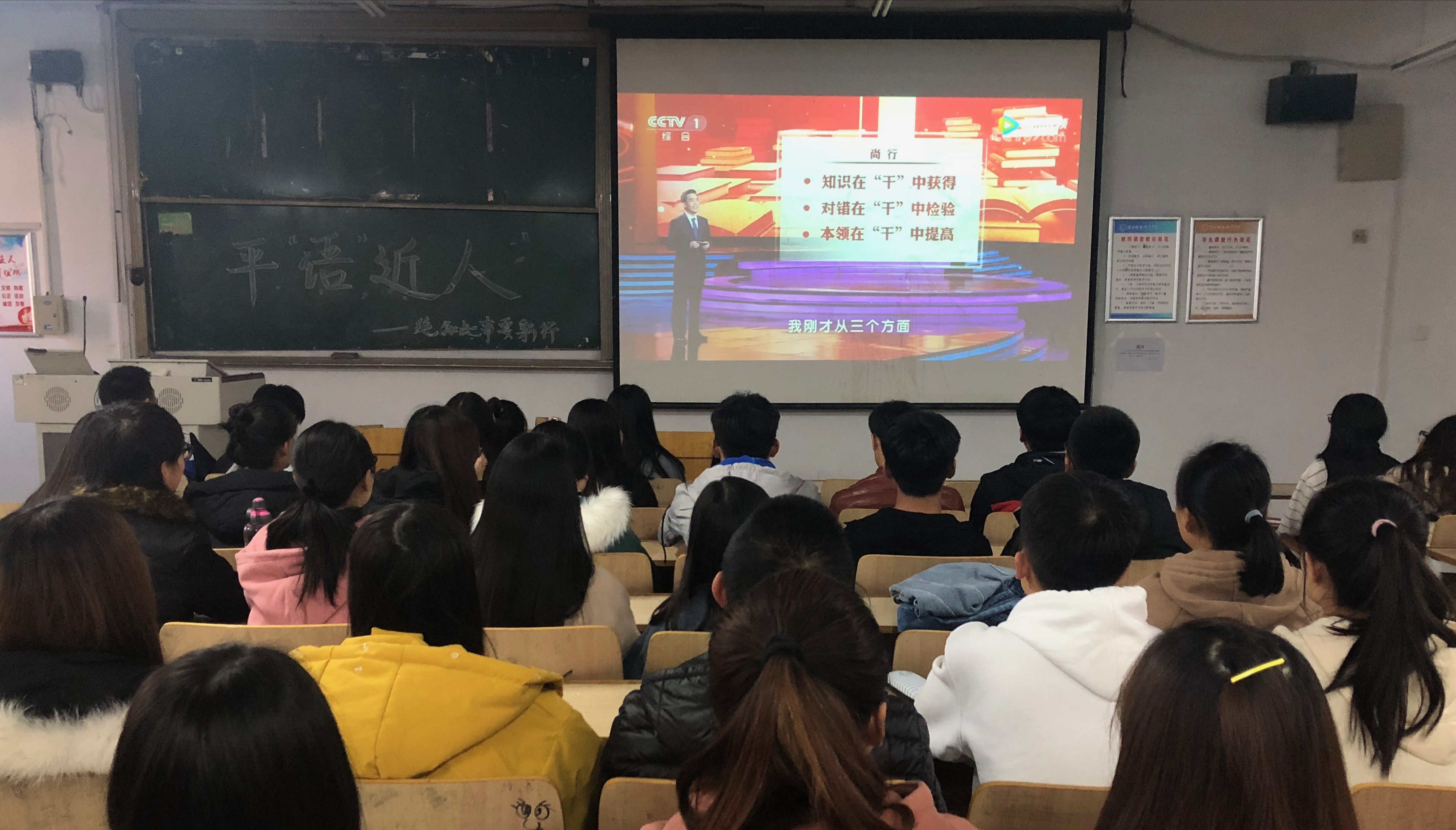 为不断把学习十九大活动引向深入,进一步推动习近平新时代中国特色社会思想的生动阐释与广泛传播。2018年11月10日,beat365唯一官网入口党委分两场组织学生党组织、学生班团组织近280名青年学生党员、入党积极分子、共青团员等学习收看了中共中央宣传部、中央广播电视总台联合创作的《百家讲坛》特别节目《平“语”近人——习近平总书记用典》。在学院广大青年学生中营造浓厚的学习习近平新时代中国特色社会主义思想的氛围。