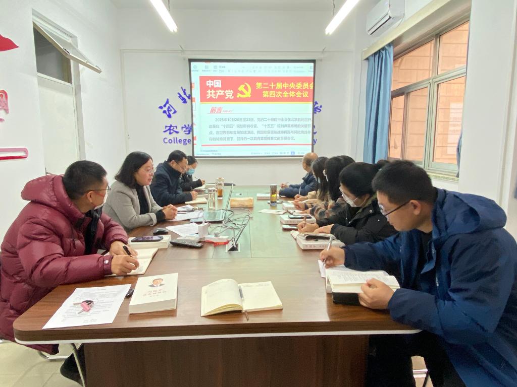 12月5日,农学与生物科技学院在学院会议室召开学习贯彻党的二十届四中全会精神宣讲报告会。学院党委书记主讲,学院领导班子成员、各支部书记参加会议。