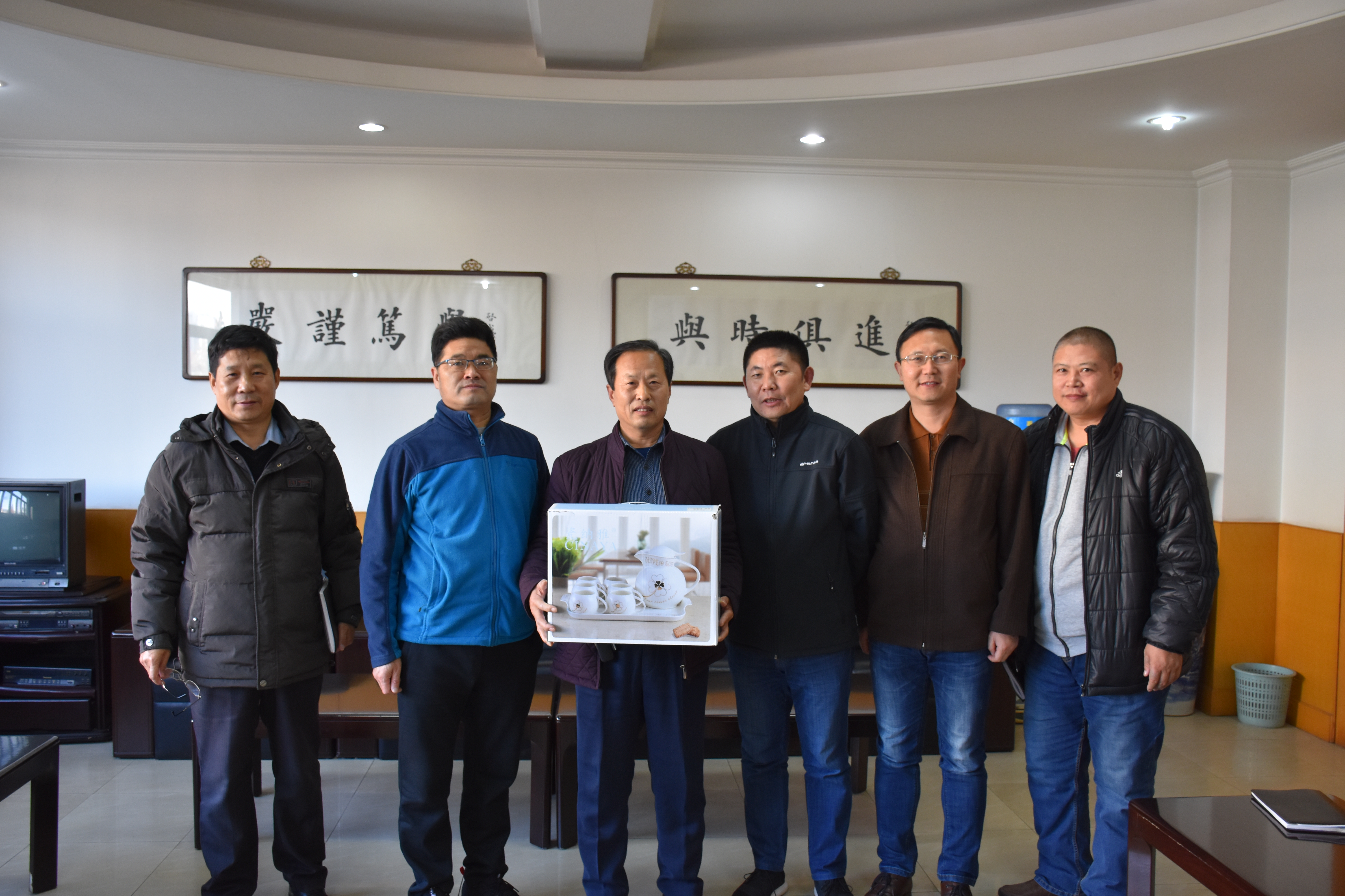 赠送了纪念品并合影留念。