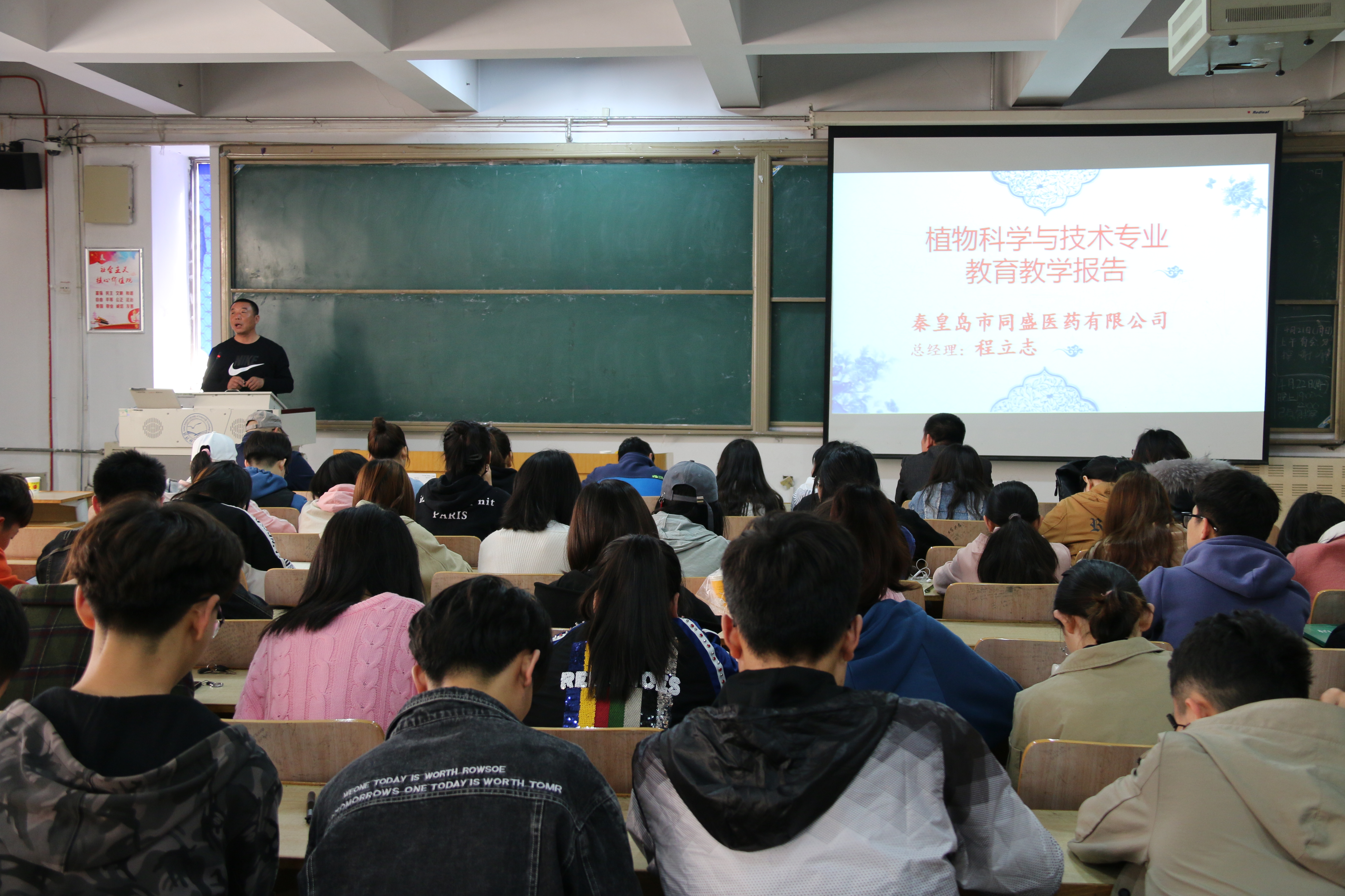 2019年4月21日,beat365唯一官网入口邀请秦皇岛市同盛医药有限公司总经理程立志来我校作题为“中药材发展与人才能力需求”的教育教学报告,植物科学与技术专业、植保专业200余名学生听取了报告。
