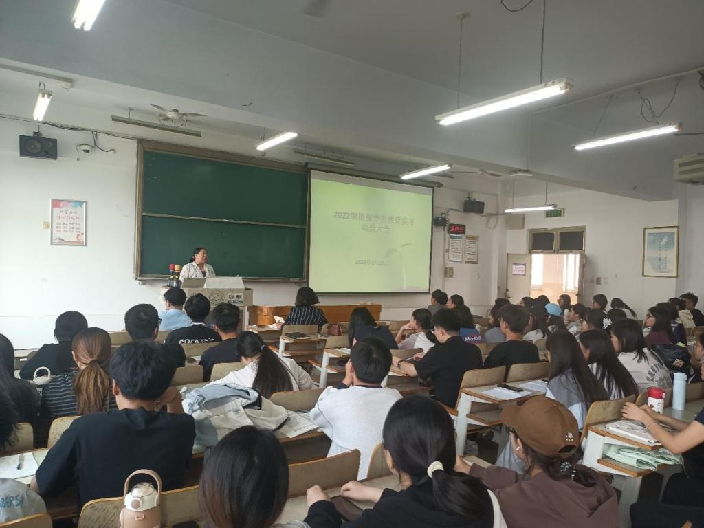 最后,教学部教师详细解读了教育实习的安排、具体计划及要求,强调了学校和学院外出实习的注意事项,最后倡导同学们文明实习、安全实习。