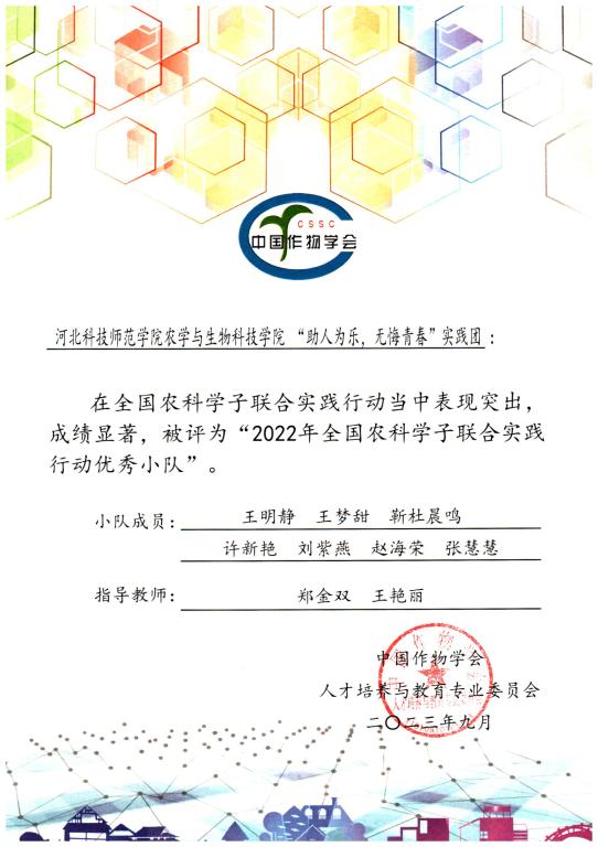 上一条:全国农科学子联合实践优秀团队